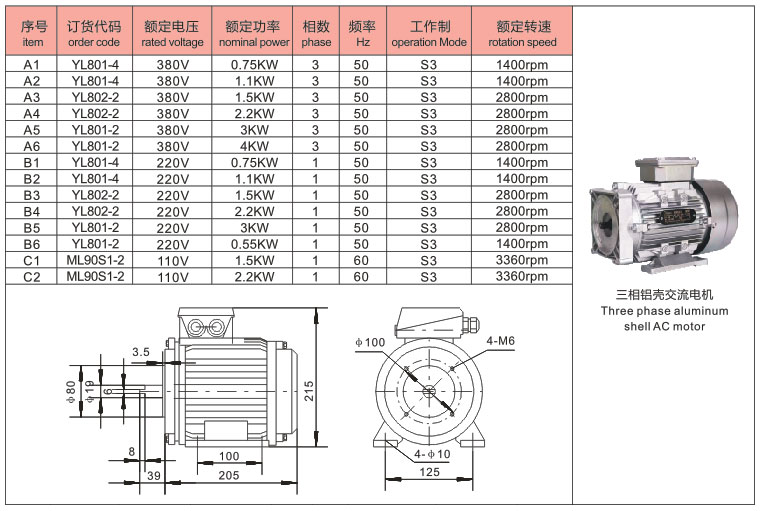 Three Phase Aluminum Shell AC Motor