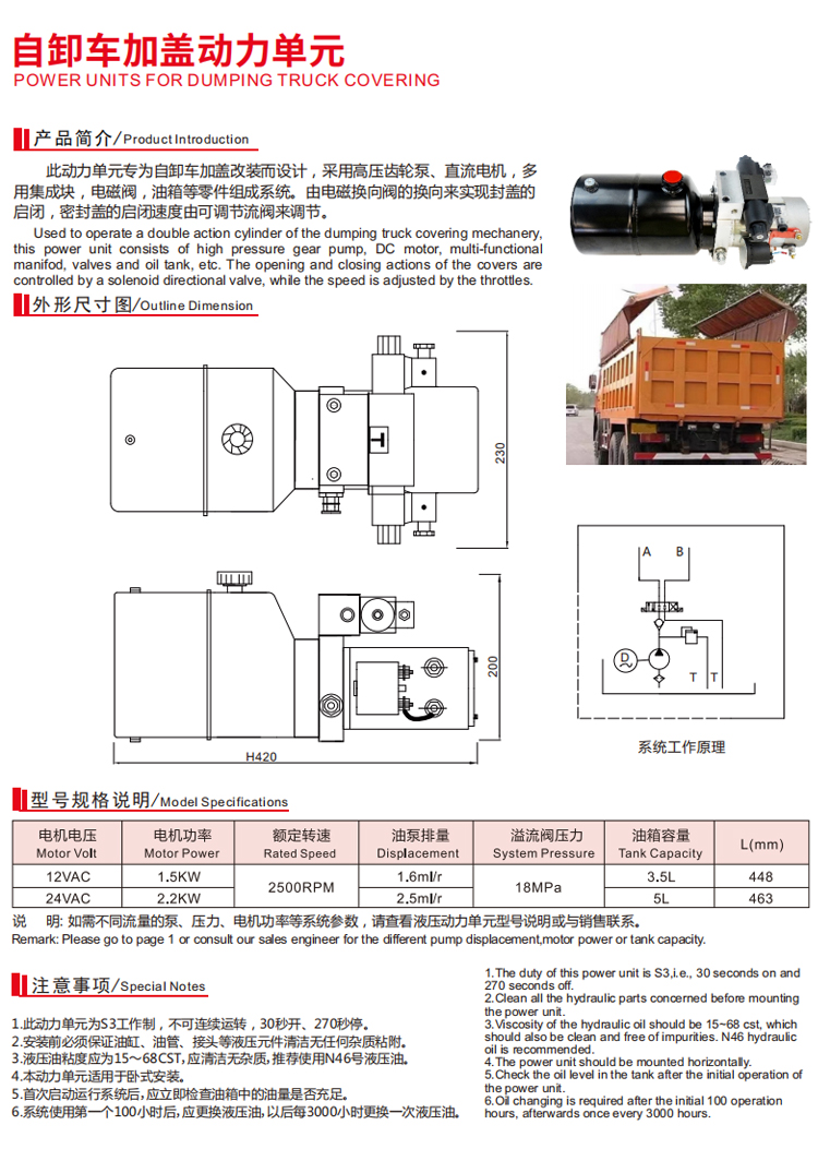 自卸车加盖动力单元