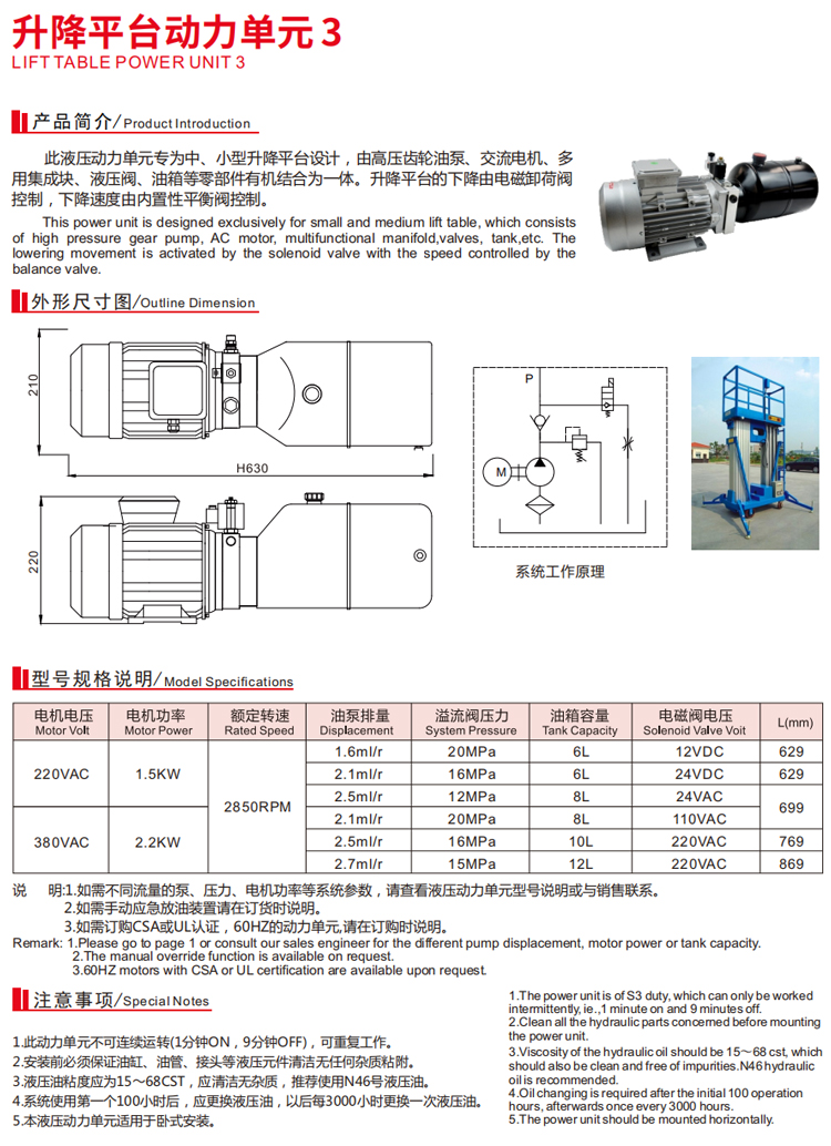 升降平台动力单元